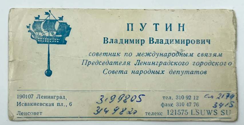В апреле 2019 года старую визитку Путина, аналогичную той, что сейчас продает Петербургский аукционный дом, пытались продать на сервисе «Юла» за 650 тыс. рублей. Пресс-секретарь президента Дмитрий Песков тогда сказал РБК, что ему неизвестно, подлинная ли эта визитка.