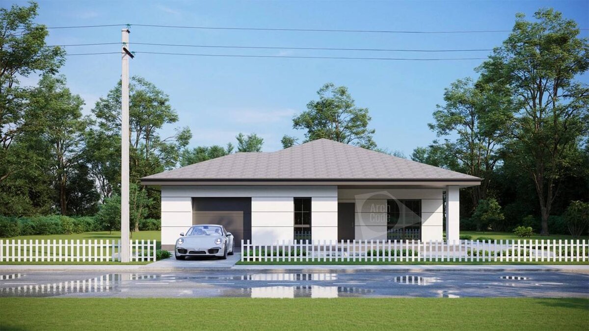 Предлагаем вам ознакомиться с проектом "Изюм" - это одноэтажный дом с просторной кухней-гостиной, который идеально впишется в городской пейзаж.