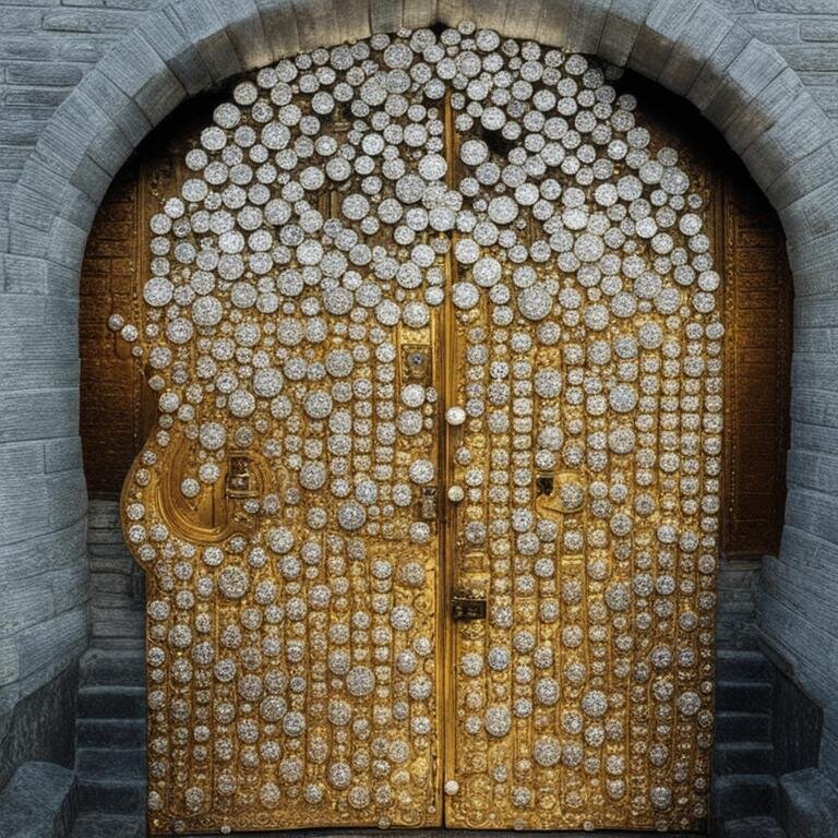 - Вот эта красотища! Это же когда Хромоножка дверь успела поменять, а я ничего не слышала? Откуда у неё деньжищи на такую красотень? Не каждый богатый Буратино может позволить себе золотую дверь, украшенную бриллиантами!