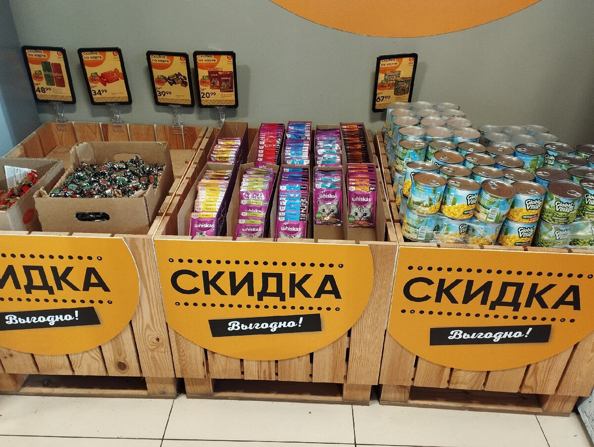 Тем более что скидки нынче не редкость - и продуктами корзинку заполним, и сэкономим немного. Предлагаю посмотреть на акции от "Пятерочки", я как раз собрала различные подборки, чтобы мы могли оценить актуальные желтые ценники. В этот раз корзинки у входа меня не впечатлили: все тот же корм для кошек по 20 рублей, консервированный горошек и кукуруза по 67 рублей, а также различные конфеты.