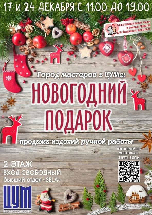Календари, игрушки елочные, козули , прихватки и сумки-шоперы - все это вы найдете на нашем столике - все вырученные средства пойдут на нужды котикам!