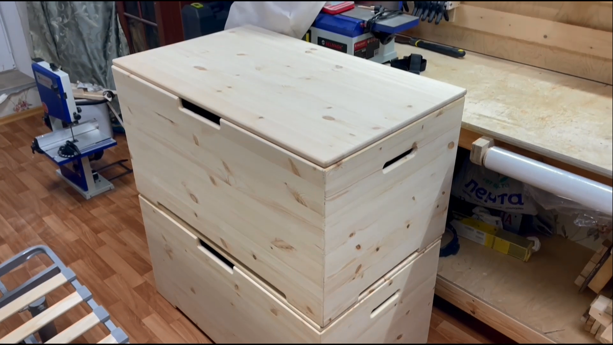 Друзья, всем привет! Относительно недавно поступил заказ на два ящика с довольно внушительными размерами (1000*600*500 мм) для игрушек в детский сад. Впервые буду работать с габаритными мебельными щитами, клеить большие параллелепипеды и разбираться с различной фурнитурой. Короче еще один интересный проект, о котором сейчас расскажу в подробностях. Погнали!