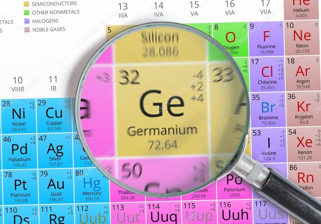 Эти три элемента одной подгруппы резко различаются по свойствам: германий — полупроводник, а олово и свинец — типичные металлы. Все эти элементы объединяет наличие 18 электронов на предпоследнем энергетическом уровне. В подгруппе сверху вниз наблюдается повышение устойчивости двухвалентного состояния. #Германий Германий более устойчив в четырехвалентном состоянии, для олова характерны оба состояния, а свинцу более свойственно двухвалентное состояние. Германий имеет алмазоподобную кристаллическую решетку. Это темно-серое хрупкое вещество с металлическим блеском. Германий более активен, чем кремний. Он реагирует при нагревании с кислородом и галогенами, окисляется до GeO2 концентрированными серной и азотной кислотами: Гидроксид германия растворим в щелочах, что указывает на его амфотерность: #Олово — серебристо-белый мягкий и легкоплавкий металл. Олово интересно своими аллотропными превращениями. При температуре ниже 13,2 ◦C устойчива неметаллическая форма α-Sn (серое олово). С