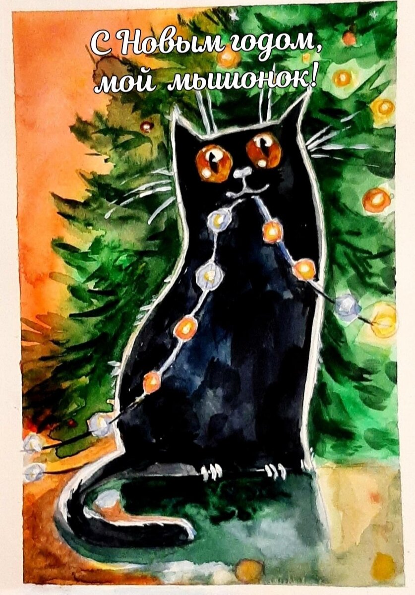 Вот только что нарисовала новогоднюю открытку. Предлагаю варианты с текстом и без(N4). Его можно подобрать на свой вкус.