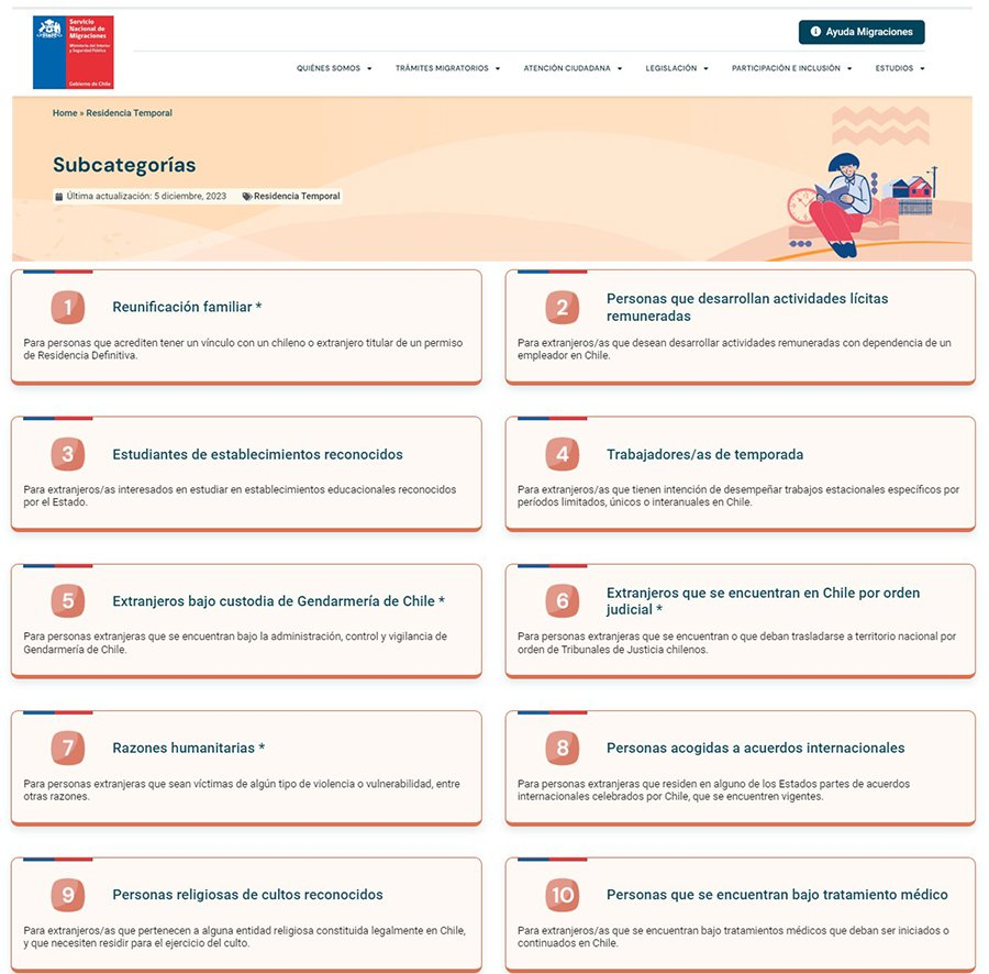 Подкатегории для ВНЖ Чили определяет закон о миграции и иностранцах, требования для каждой отличаются. Следует учесть следующее: