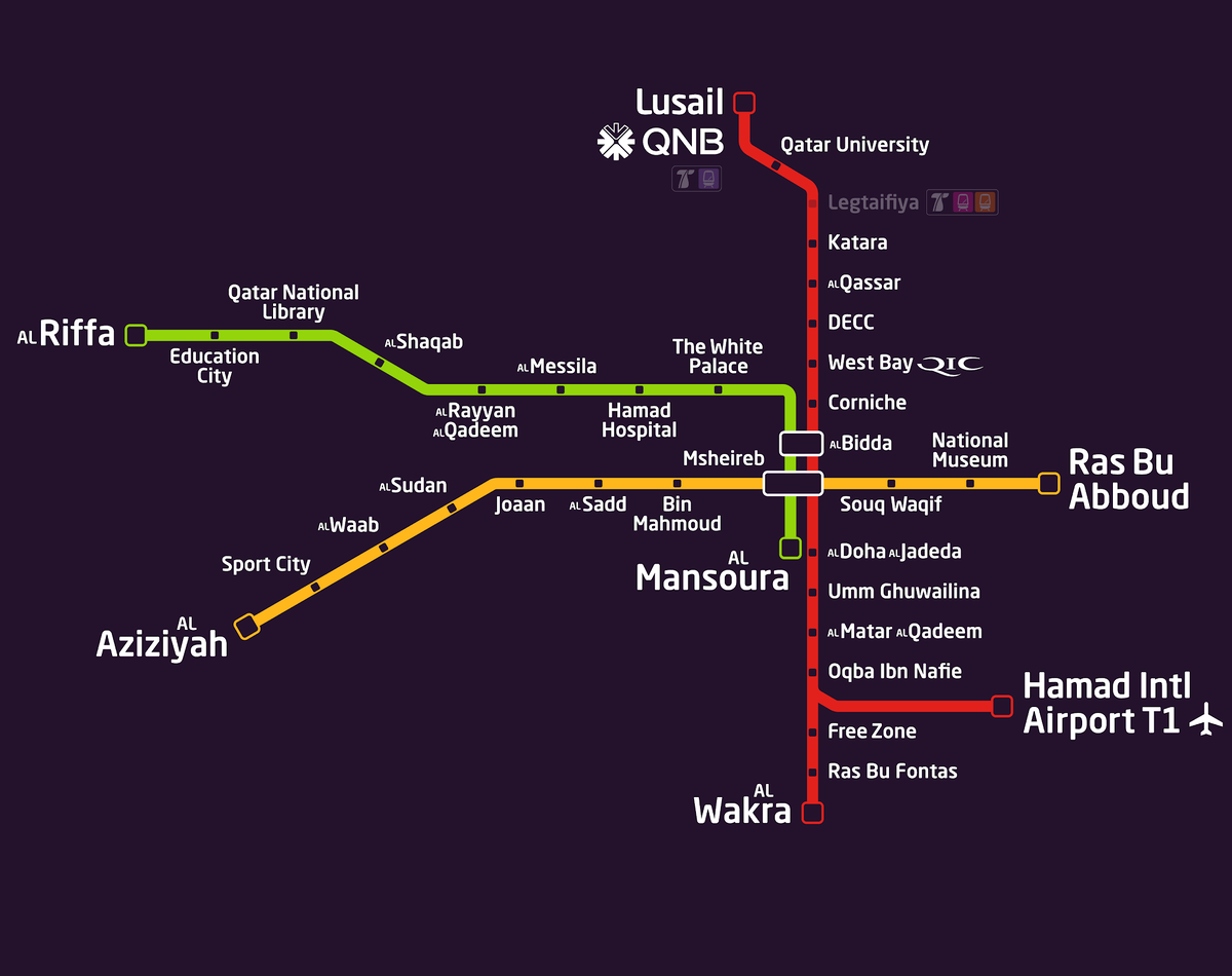Так как официальный сайт метро qr.com.qa не удается загрузить из России (но пробуйте, возможно именно у Вас получится) воспользуйтесь актуальной информацией о работе метро и открытых станциях ➡️по этой ссылке: