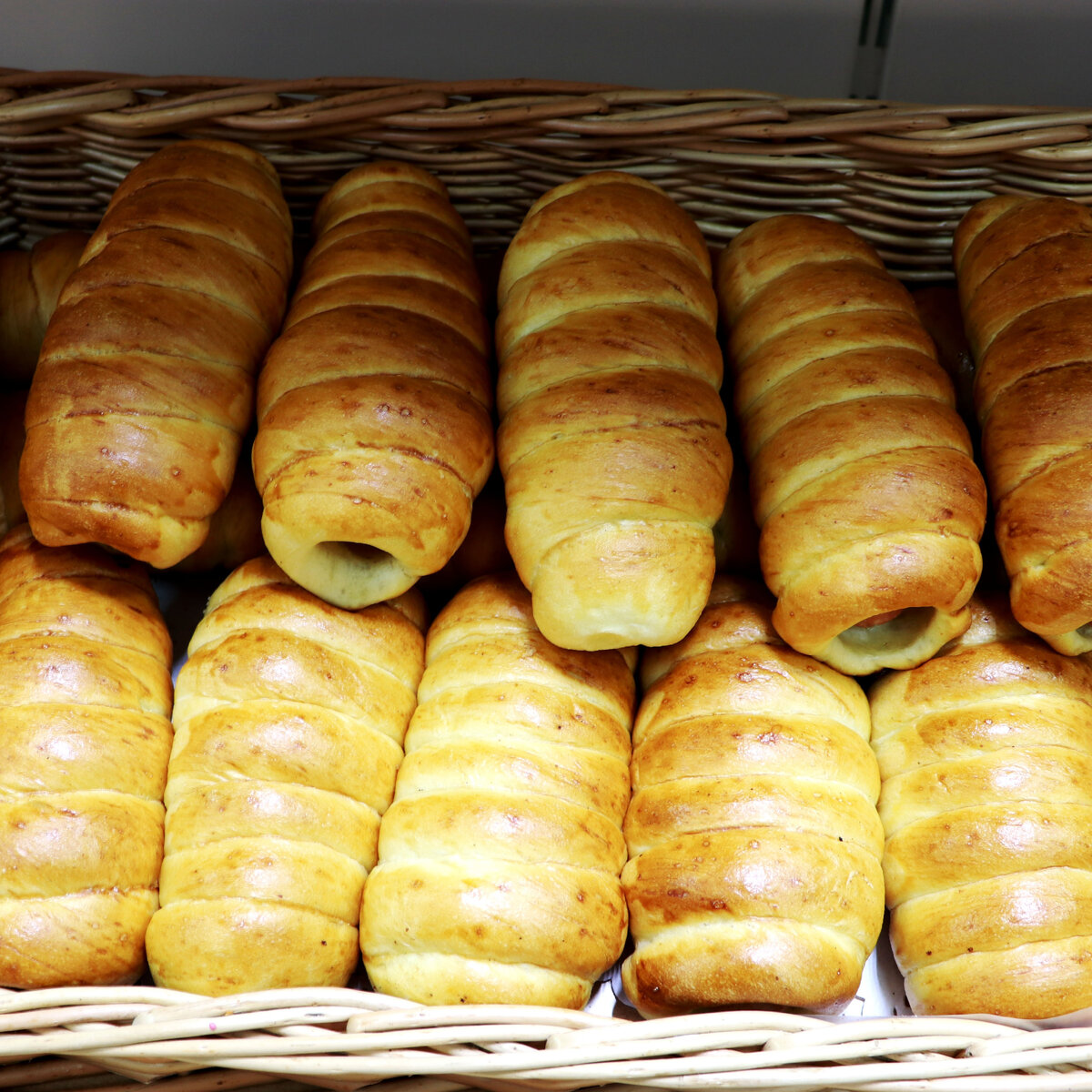 Из каждого шарика раскатываем жгут длиной 50 см. Обматываем полоски теста вокруг сосисок. Снова даем расстояться под полотенцем 15 минут. Далее смазываем тесто яйцом и посыпаем кунжутом. Выпекаем в разогретой до 190°С духовке 35 минут.
