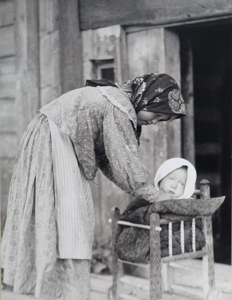 Примеры детской мебели у нас не так многочисленны, как взрослой, но тем не менее, сохранившиеся образцы показывают, что это та ниша, где помимо декора ради декора могла ещё долго сохраняться культура обережного декорирования. На предметы наносятся символы, которые воспринимаются создателями и их средой магическими защитными знаки. Их могли наносить как хаотично, так и системно, создавая повторяющийся узор. Общеизвестно, что помереть в детском возрасте было проще пареной репы: на территории Европейской России в период 1868-81 гг. из 100 детей до 1 года 21 ребенок умирал. Являются ли орнаменты, в особенности крест на задней ножке детского стульчика, можно только гадать. Однако, стул замечателен сам по себе. Лично я встречаю такой вариант украшения впервые. А вы? Но как нанесен этот орнамент? Вариант I Роспись краской с помощью заостренного инструмента, например пера. Предварительно могли процарапать орнамент, а затем заполнить прорези краской. Вариант II Орнамент создан глухой р