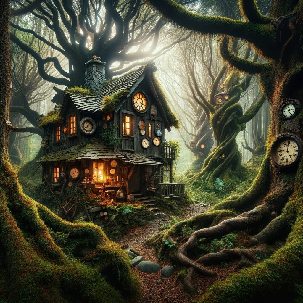 В одном далёком и таинственном лесу, где деревья шептали друг другу древние секреты, жил старый часовщик. Его домик был полон часов всех форм и размеров, но одни из них были особенными: они показывали не время, а моменты жизни людей. Однажды ночью, в дверь его домика постучался незнакомец в плаще, просил починить очень старые, почти разрушенные часы. Часовщик взялся за работу, и когда часы заработали, он увидел в них своё собственное отражение, но молодым. В тот момент незнакомец снял капюшон, и часовщик узнал в нём себя, но старшего на многие годы. Старый часовщик стоял перед своим будущим, которое пришло к нему из прошлого, чтобы напомнить о ценности каждого мгновения жизни.