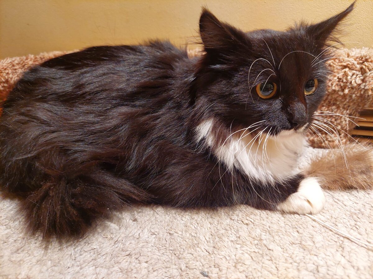 Очень приятно, когда есть возможность поделиться еще одной историей с замечательным концом!В Москве, в конце октября, были первые заморозки и снег.Наши знакомые приехали на дачу посмотреть что там и как.А маленький, трехмесячный, котенок впервые в жизни узнал, что кроме голода и дождя бывает еще и снег с морозом.Родился он летом и о таких сюрпризах погоды ничего не знал. Котейке очень повезло в том, что он начал мяучить и скрестись в дверь именно того дома, куда как раз приехали наши знакомые.Они услышали шум, если то, что делал маленький,оголодавший и замерзший зверек, можно назвать шумом, открыли дверь и обнаружили котенка. У них уже были свои питомцы в Москве но оставить котенка на улице значило подписать ему приговор.Можно было, конечно, просто накормить но дальше то что?Где ему потом согреться и поесть в пустом поселке?Решение было простым и понятным, для добрых людей, забрать котейку в Москву.Так он и поехал в нее.Дома котик обсох и обогрелся, конечно поел, но продолжал дрожать