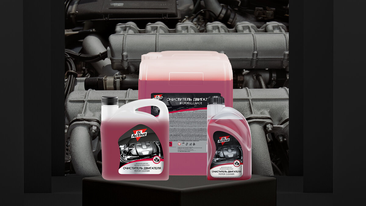 Чтобы с минимальными затратами усилий и времени отмыть даже стойкие загрязнения, рекомендуем использовать профессиональный очиститель двигателя Dr.Active MOTOR CLEANER. В его состав входят поверхностно-активные вещества и химические соединения, которые эффективно воздействуют на все типы загрязнений на основе масла, в том числе спекшиеся под воздействием высоких температур. Важно: химическая формула очистителя исключает негативное влияние активного вещества на резину, пластик, различные полимеры. Следовательно, обеспечивается один из главных принципов работы средств автохимии – не навреди.