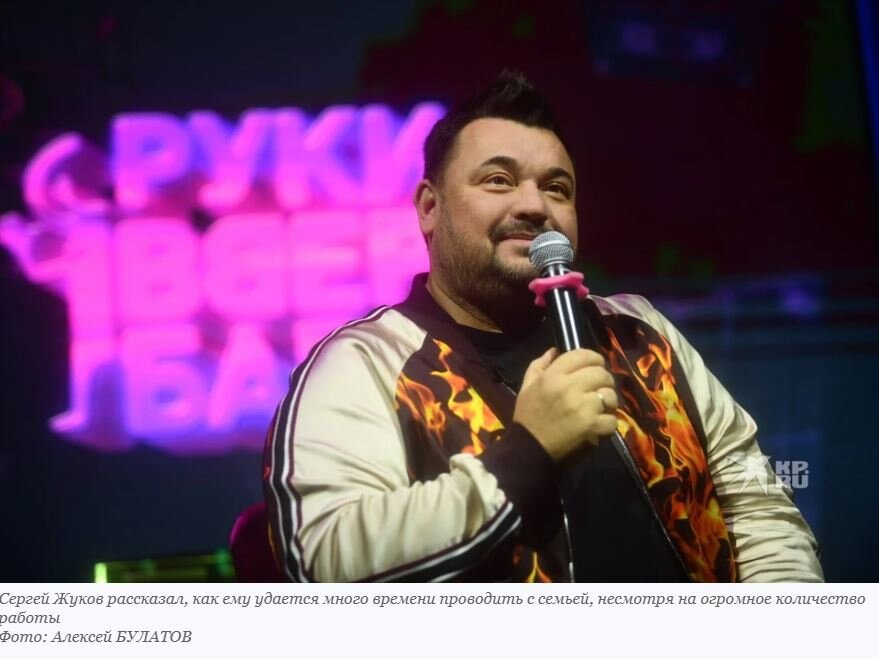Лидер группы «Руки Вверх!» Сергей Жуков приезжал в Екатеринбург с сольным концертом и чтобы лично открыть свой бар в уральской столице. А в перерыве дал небольшое интервью «КП-Екатеринбург». Известный музыкант и продюсер рассказал, почему отказывается от корпоративов в Новый год, как ему удается совмещать огромное количество работы с семьей и о самом ярком детском новогоднем воспоминании. «СЕМЬЯ – ЭТО САМОЕ ЦЕННОЕ ДЛЯ МЕНЯ» - Сергей, вы как-то говорили, что на концерте «Руки Вверх!» стараетесь перенести зрителей в то время, когда у них были дискотеки, первый танец, первый поцелуй. А вы свой первый поцелуй помните? - Конечно, помню! Ее звали… Нет, не буду говорить имя. Пусть это останется только нашим с ней прекрасным воспоминанием. - Вы уже рассказывали «КП», как отмечали Новый год в студенчестве. А каким он был в вашем детстве? Какой был любимый костюм? Что просили у Деда мороза? - А вот про костюмы забыл! Представляете… Новогодний стол с мандаринами помню, Елку со звездой на макушке