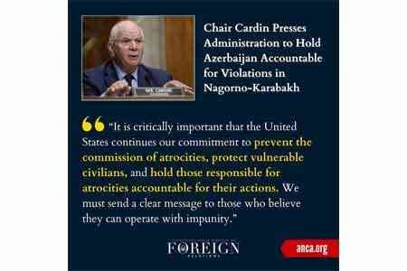 АрмИнфо.Председатель сенатского комитета по международным отношениям, сенатор Бен Кардин направил письмо госсекретарю Энтони Блинкен, призывая его продолжить сосредоточивать усилия на привлечении режима Алиева к ответственности за этнические чистки в Нагорном Карабахе и продолжать поддержку Соединенными Штатами армян, которые были вынуждены покинуть регион. В сообщении на сайте Комитета приводится письмо Кардина Блинкену, в котором в частности, говорится: "В то время как ужасные трагедии в других местах отвлекли внимание всего мира, я пишу, чтобы убедиться, что мы по-прежнему сосредоточены на привлечении режима Алиева к ответственности за его наглую кампанию этнических чисток в Нагорном Карабахе и продолжаем поддерживать армян, которые были вынуждены бежать. Как вам хорошо известно, в сентябре 2023 года президент Ильхам Алиев начал военную кампанию, в результате которой свыше 100 000 армян были вынуждены покинуть свои дома и в ходе которой, как сообщается, азербайджанские силы убили и