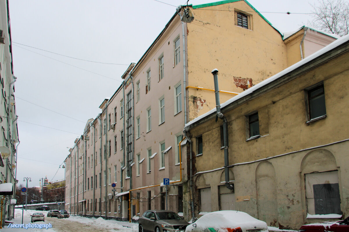 Скоро я вернусь к своей прогулке по Тверскому району – из Леонтьевского переулка дальше, к новым историям. А сейчас, раз уж вчера вечером речь коснулась Большого Каменного моста, хочу показать один дом, что стоит буквально шагах в двадцати от основания моста. Это дом №3 по Лебяжьему переулку, откуда открываются прекрасные виды на Кремль, дом Пашкова и храм Христа Спасителя. В переулке когда-то стояла усадьба царевны Екатерины Ивановны, племянницы Петра Первого. Здесь жил первый учитель маленького Петра – Никита Моисеевич Зотов, а позднее – сенатор и действительный статский советник Александр Васильевич Алябьев, отец знаменитого композитора. И даже снимал квартиру Борис Пастернак. А на крыше бывшего водочного завода Михаила Андреевича Попова в самые горячие дни 1917-го расположились с пулеметами юнкера, перекрывая подступы к Кремлю. Но сегодняшний дом, казалось бы, не имеет удивительной истории, да и выглядит он весьма прозаично и ничуть не презентабельно. Тихий домик постройки 1912 год