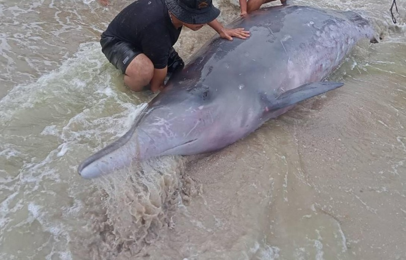 Редкий Кит Блейнвилль стал героем спасательной операции на пляже Саком в Сонгкхле. В отчаянной попытке спасти эту редкую самку клюворыла, сотрудники департамента морских и прибрежных ресурсов прибыли на место происшествия. Кит, длиной около 4 метров и весом в пол тонны, получил серьезные травмы и ранения, что помешало ему вернуться обратно в море.