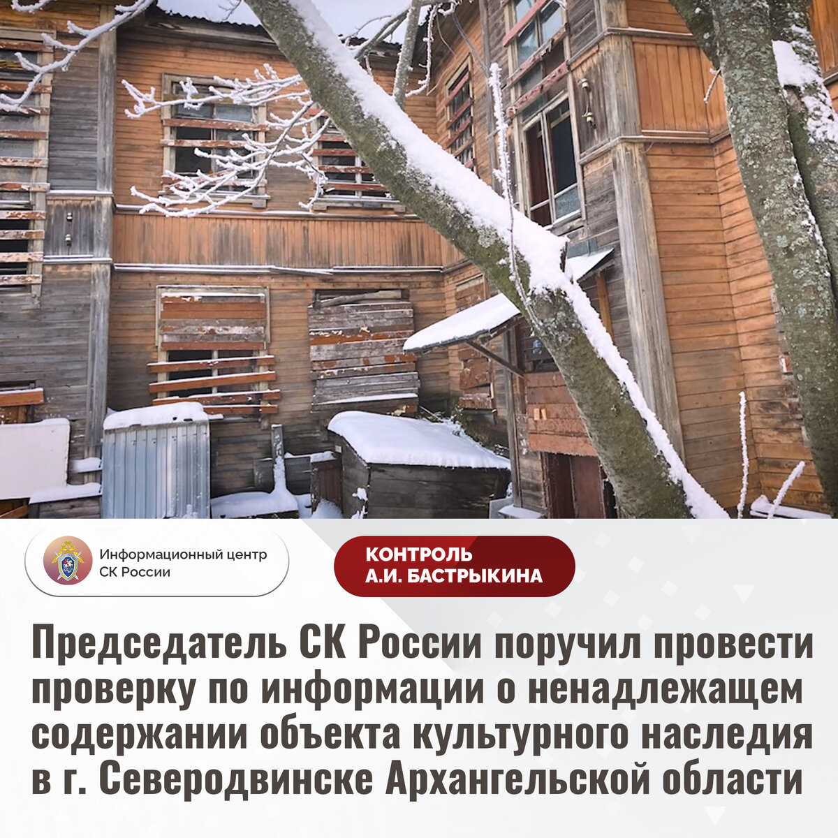 Председатель СК России поручил провести проверку по информации о ненадлежащем содержании объекта культурного наследия в г. Северодвинске Архангельской области