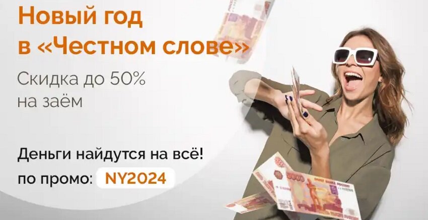 Честное Слово запустил акцию "Новый год в «Честном слове», скидка до 50% на заём" - 5 дней без процентов.