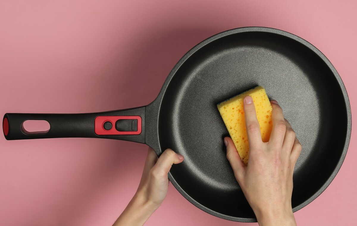 Антипригарное покрытие изготовлено специально, чтобы облегчить не только готовку, но и уход за посудой. Поэтому оно является достаточно устойчивым к загрязнениям. Однако, если вы заметили, что к посуде стала чаще пригорать еда и появляться нагар, проверьте покрытие. Возможно, оно повредилось.
