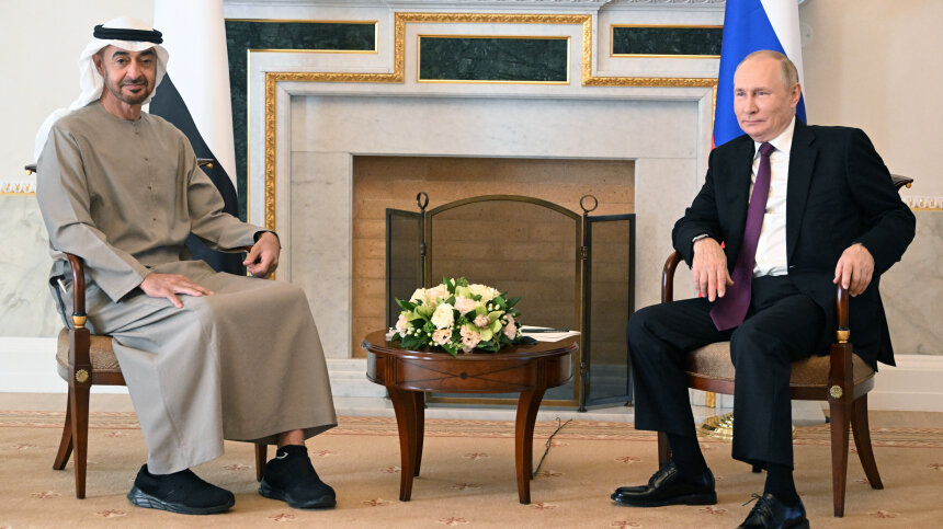 Глава государства проведет переговоры с президентом Мухаммедом Бен Заидом Аль Нахайяном. Фото: © РИА Новости / Павел Бедняков; 5-tv.ru Самолет президента России Владимира Путина приземлился в аэропорту Абу-Даби. В Объединенные Арабские Эмираты (ОАЭ) он прибыл для встречи с президентом Мухаммедом Бен Заидом Аль Нахайяном. У лидеров запланированы переговоры. Ожидается, что Путин и Аль Назайян обсудят вопросы развития двусторонних отношений, а также актуальные международные проблемы, в частности ситуацию на Ближнем Востоке. В 2023 году президенты России и ОАЭ встречаются второй раз. Ранее они сумели побеседовать на полях Петербургского международного экономического форума в июне. Арабские Эмираты были представлены как «страна-гость». В Абу-Даби Путин прибыл в составе делегации. Сопроводили его глава МИД РФ Сергей Лавров, первый вице-премьер РФ Андрей Белоусов, глава Минпромторга Денис Мантуров и другие высокопоставленные чиновники и представители деловых кругов. После переговоров с Аль На