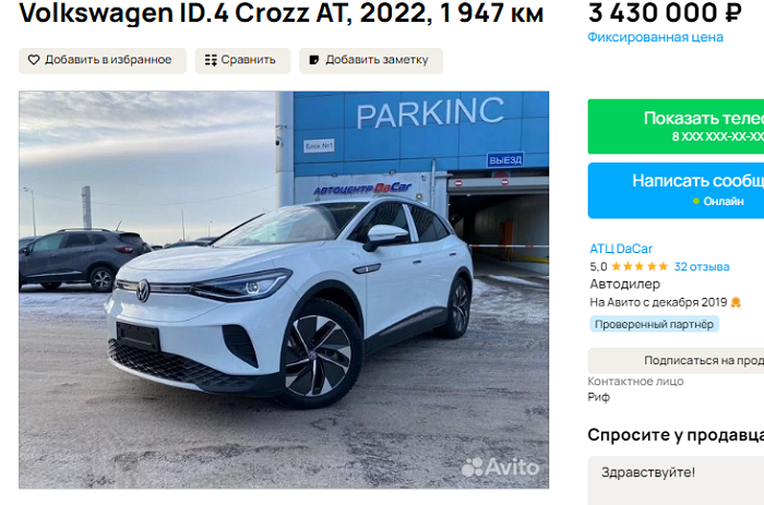 Привет, уважаемая публика! Свежий обзор всех электромобилей с пробегом, которые прямо сейчас продаются в Казани у дилеров - ниже. Напомню, что я рассматриваю электрички с левым рулём, с пробегом (более 500 км) и анализирую только дилерские площадки, на которых у вас есть возможность приобрести машину в кредит, а также воспользоваться услугой "трейд-ин". В начале ноября удалось найти 10 предложений. Ценовой диапазон тогда был 4,5 - 13,4 млн. руб. Что ж, посмотрим, как обстоят дела в декабре. Компании перечисляю в алфавитном порядке. АТЦ DaCar Автосалон "DaCar", что на ул. Сибгата Хакима - новичок моих обзоров. Ранее не замечал в нём электромобилей с пробегом. Что ж, расширение географии дилеров, торгующих б/у электричками - это очень хорошо. По машине: заднеприводный VW ID.4 Crozz 2022 г.в. из Китая со старшей батареей (85 кВт*ч), но в самой простой комплектации, в которой нет даже обогрева сидений, (зато есть адаптивный круиз-контроль!). Заявленный пробег: 1947 км. Ценник: 3 430 000 ру