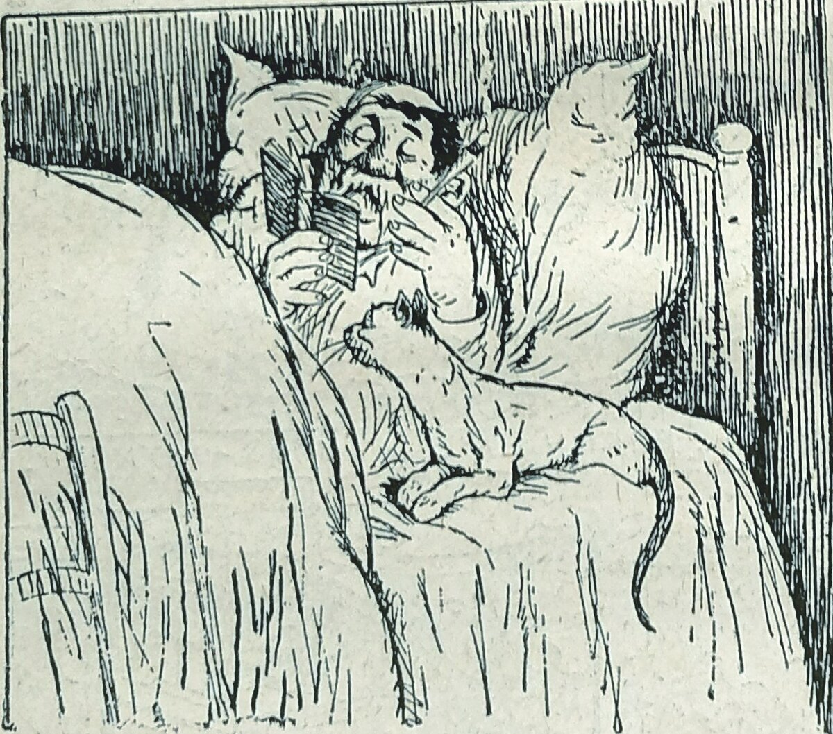Подобные головоломки пользуются популярностью по всему миру! Однако отдельную любовь они получили в Великобритании, Италии, Франции и дореволюционной России. Некоторые визуальные головоломки из прошлого дошли и до нас, и вот как раз одна из них прямо перед вами. Она была опубликована в 1913 году в «Петербургской газете». На первый взгляд, кажется, что это абсолютно обычная картинка: пожилой мужчина лежит в кровати и читает книгу, куря сигару, а рядом с ним расположилась кошка. Однако среди этого домашнего уюта кое-кого не хватает. Автор изображения уверяет, что в этой же комнате находится и жена пожилого господина. Но где же она спряталась? Итак, сосредоточьтесь и приступайте к поискам! А затем листайте вниз ⬇️ ⬇️ ⬇️ ⬇️ ⬇️ ⬇️ ⬇️ ⬇️ ⬇️ ⬇️ ⬇️ ⬇️ ⬇️ Уже пытались загуглить правильный ответ? Даже если у вас получилось что-то найти, кажется, что это далеко от истины. Одни уверяют, что лицо женщины где-то в районе подушки, другие утверждают, что где-то в одеяле. А вы как считаете? Правильно