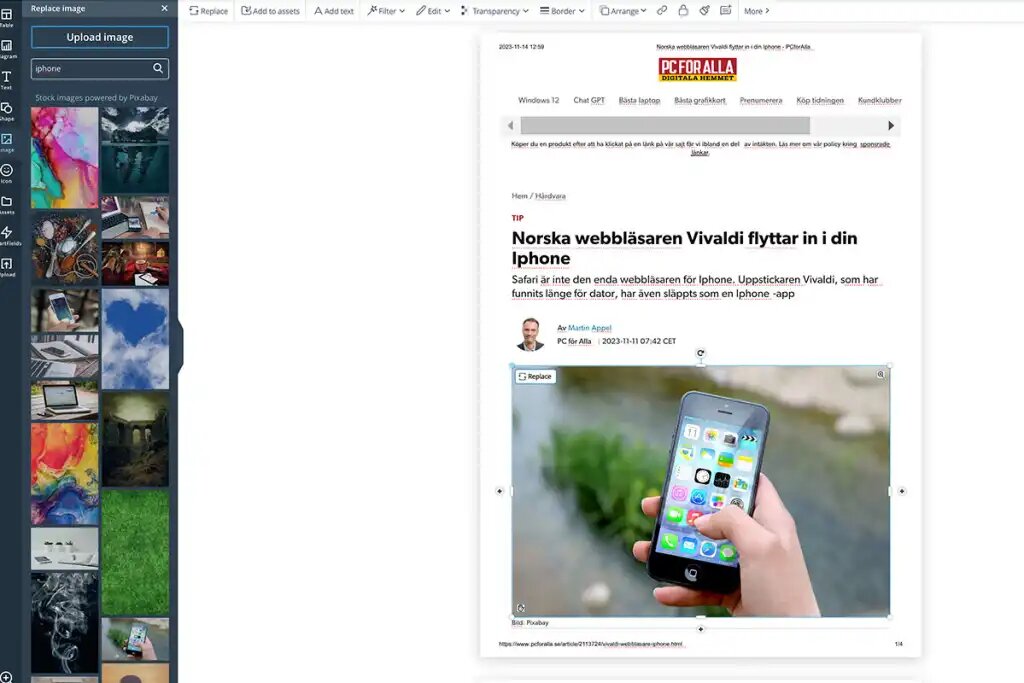 Из протестированных мною бесплатных программ PDFgear лучше всех справляется и с этой задачей. Единственный существенный недостаток программы - невозможность редактировать уже существующие изображения. Вы можете заменить изображение, вставив новое и поместив его поверх старого, но вы не можете, например, изменить размер или удалить изображение. Это могут сделать Acrobat Pro и некоторые другие платные программы.
