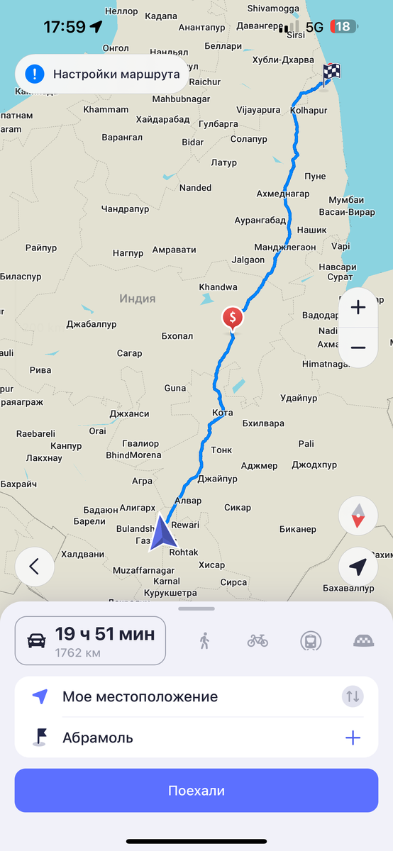 Из Дели до Гоа (мне надо в Арамболь) примерно 1800 км. Для России это 3-4 дня максимум, но я не знаю как будет в Индии. Вообще у них автобус круглосуточно который едет, идет по этому маршруту больше 3 суток 😅
