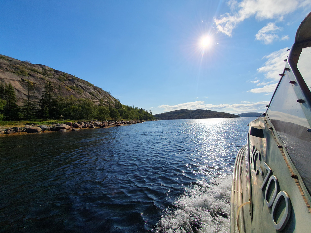 Проплываем между островами Немецкий кузов и островами Вороньи Как оказалось, не такие уж тут и дикие места. Частенько встречаются лодки, по берегам много туристических стоянок. Огибаем остров Немецкий кузов и оказываемся на песчаном обустроенном пляже. Навесы, родник, места под стоянки, туалет. Оказывается, летом тут стоит палаточный детский лагерь. Отсюда же начинается тропа на другу сторону острова. Тут нам дали время несколько часов, погулять по острову, и рассказали, как подняться на самую высокую точку острова.