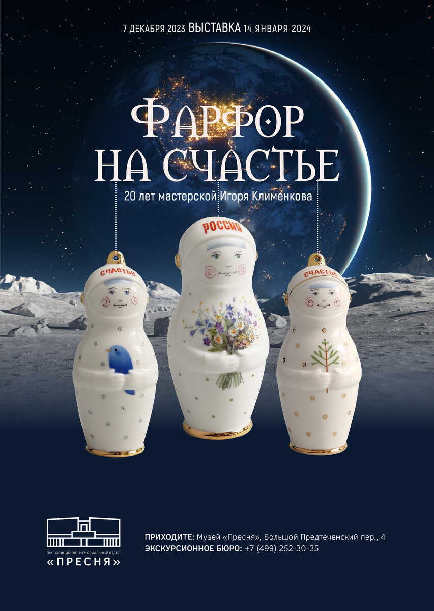А музей «Пресня» — филиал Музея современной истории России — под конец года подготовил выставку подарочного и декоративного фарфора из мастерской Игоря Клименкова, которая вот уже 20 лет успешно работает в Москве при Творческом союзе художников России.