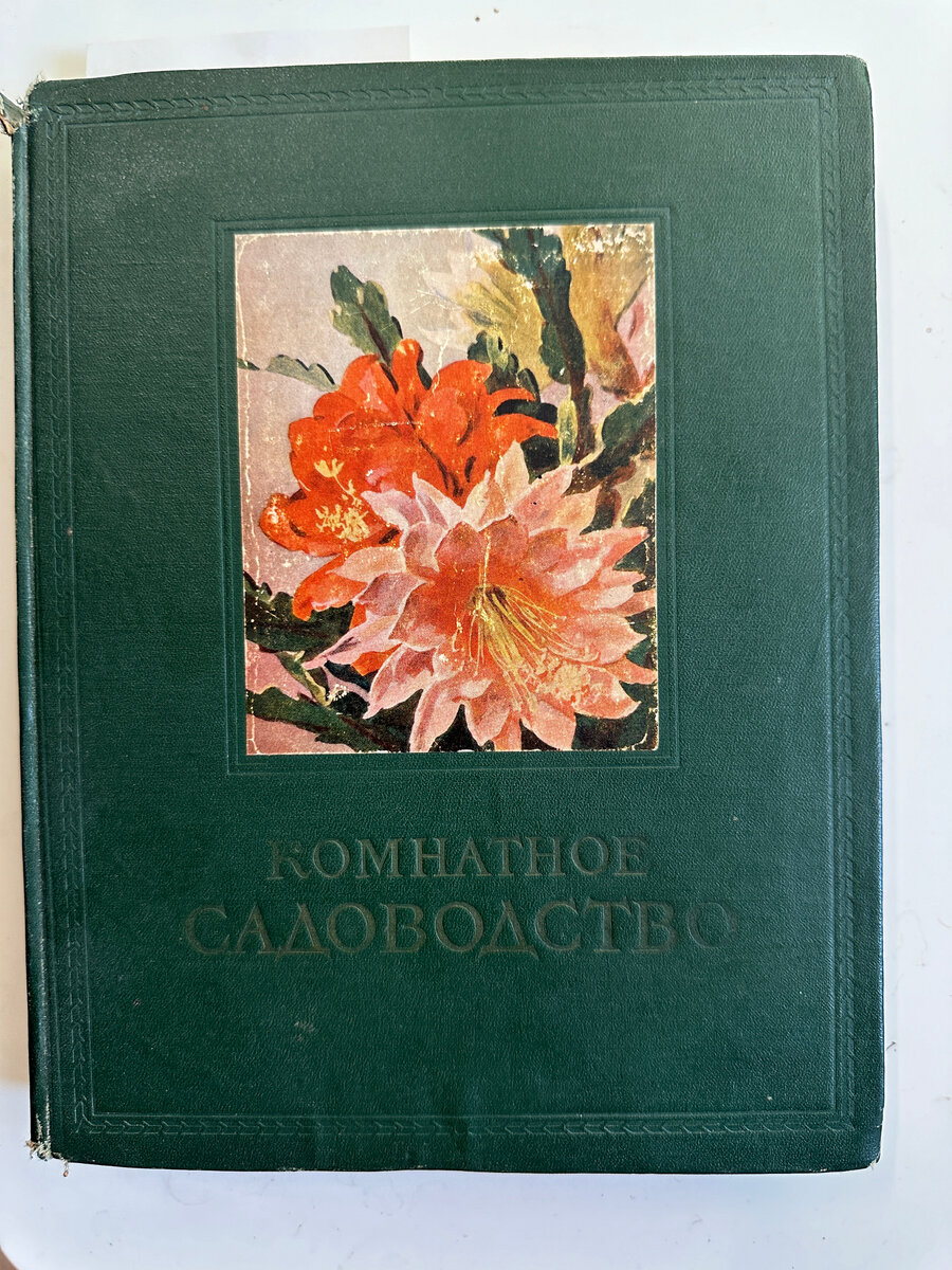 Так вот у этой знаменитой книги была и определенная свита. Из изданий менее значительных, менее роскошных, менее известных, но тоже качественных и претенциозных. Среди них ставшая уже редкостью: «Комнатное садоводство», Издательство Сельскохозяйственной литературы 1956 г. У нее тоже солидный тисненый переплет (благородно-темно-зеленый - а какой же еще, раз про растения!), но бумага уже подешевле - тонкая и сейчас вся болезненно-желтая, иллюстрации куда как поскромнее.