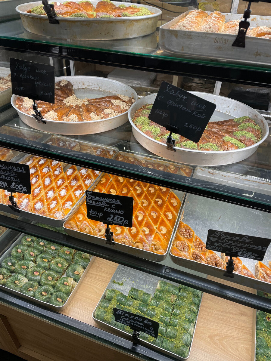 Сегодня расскажу про турецкую пекарня «Lale Bakery» на Фонтанке, в самом центре Петербурга. На днях после долгой прогулки с моим другом-блогером, мы заглянули в турецкую пекарню, мимо которой я уже не раз гуляла вдоль реки Фонтанки. Это место для истинных ценителей турецких сладостей! Здесь их много, на любой вкус и цвет. Я себя к любителям турецких сладостей не отношу, поэтому взяла минимен (турецкая яичница с овощами) и сосиску в тесте. К минимену принесли ещё колечко с кунжутом (вкусное!). Друг взял бургер с курицей и тоже сосиску. Порадовало то, что в пекарне есть и некоторые обычные блюда, а не только сладости и хлеб. Из напитков я, любитель горячительного, взяла глинтвейн, который оказался недорогим и очень вкусным! 370 руб. за чайничек 500 мл. По-моему, отлично! Что касается сладостей, они не бюджетные. Цена указана за 100 грамм, когда я поинтересовалась, сколько выйдет один кусочек (как на фото выше), мне сказали, что примерно 450 руб. Кусочки довольно маленькие! Поэтому я да