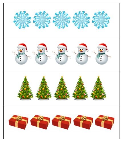 Одна новогодняя ёлка, две новогодние ёлки, три новогодние ёлки, четыре новогодние ёлки, пять новогодних ёлок.