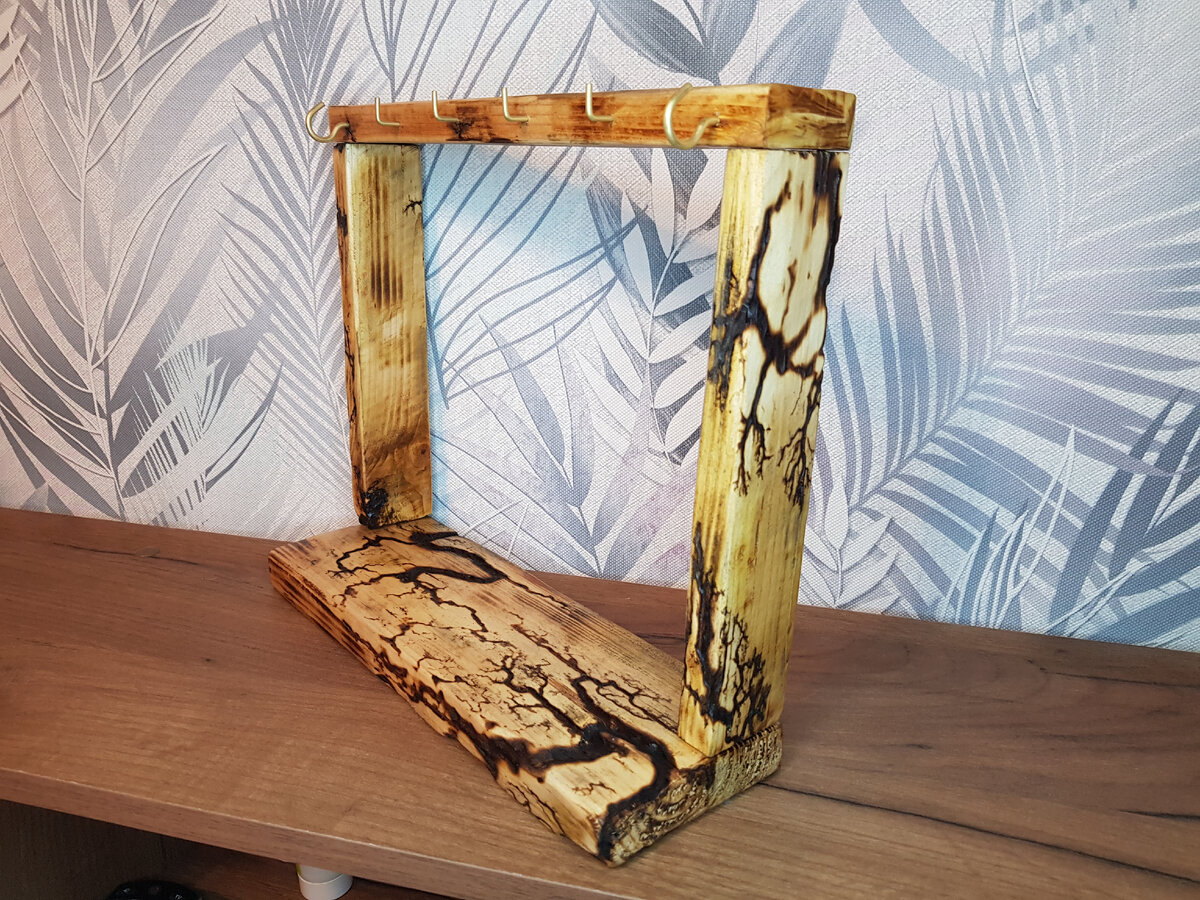 Доброго времени суток уважаемые подписчики и гости нашего канала. Супруга работает в сфере nail-сервиса и решили сделать для неё подставку для типс своими руками в необычном стиле. На стройке древесных обрезков хватает. Для подставки взял необрезную доску 12х2.5 см длиной 30 см. Для боковушек и верхней планки взял брусок 2х4 см, длина боковушек 22 см, длина верхней планки 30 см. Всё дерево зачистил наждачкой до состояния гладкой древесины, углы немного тоже закруглил. Обработанную древесину смочил раствором воды с содой и подключил к своему "аппарату лихтенберга". После немного обожгли дерево газовой горелкой, собрал все детали, вкрутили в вверхнюю планку крючки для подвеса типс и покрыл всё лаком. Что получилось смотрите на фото. По-моему, необычно и красиво. Не забудьте поддержать автора пальцем вверх 👍 и подпиской на канал, если ещё не подписаны!