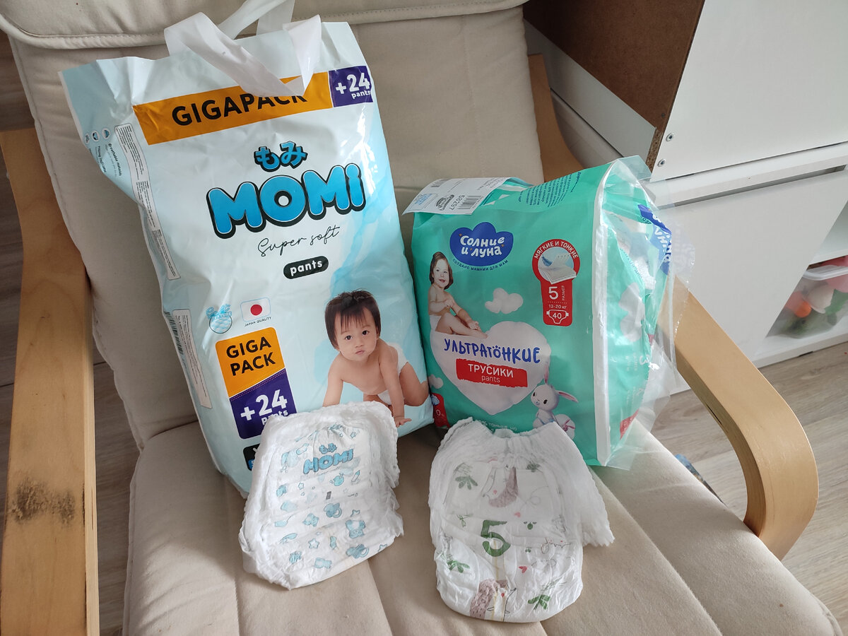 Подгузники. Моя дочь ходит в подгузниках круглосуточно. Оттого к качеству и цене я предъявляю жёсткие требования. Нормальной ценой за штуку считаю 15-16₽. В последнее время покупала ЭКО подгузники Солнце и Луна. На удивление оказались приятными, в меру жёсткими,без посторонних запахов подгузниками. Производятся у нас в России. Однако цена на озоне пошла ввысь, поэтому стала искать альтернативу. И нашла у бренда Моми. Японцы, пока что цена держится 16₽/шт. Когда раньше их брала, знала,что качество на высоте, но тогда цена на них кусалась. А сейчас они выпустили бюджетнюю линейку, очень мягкую. Не ожидала такого качества за такую цену. На них нет липкой ленты утилизации, может кому-то это будет важно. Я ей вообще не пользуюсь.
