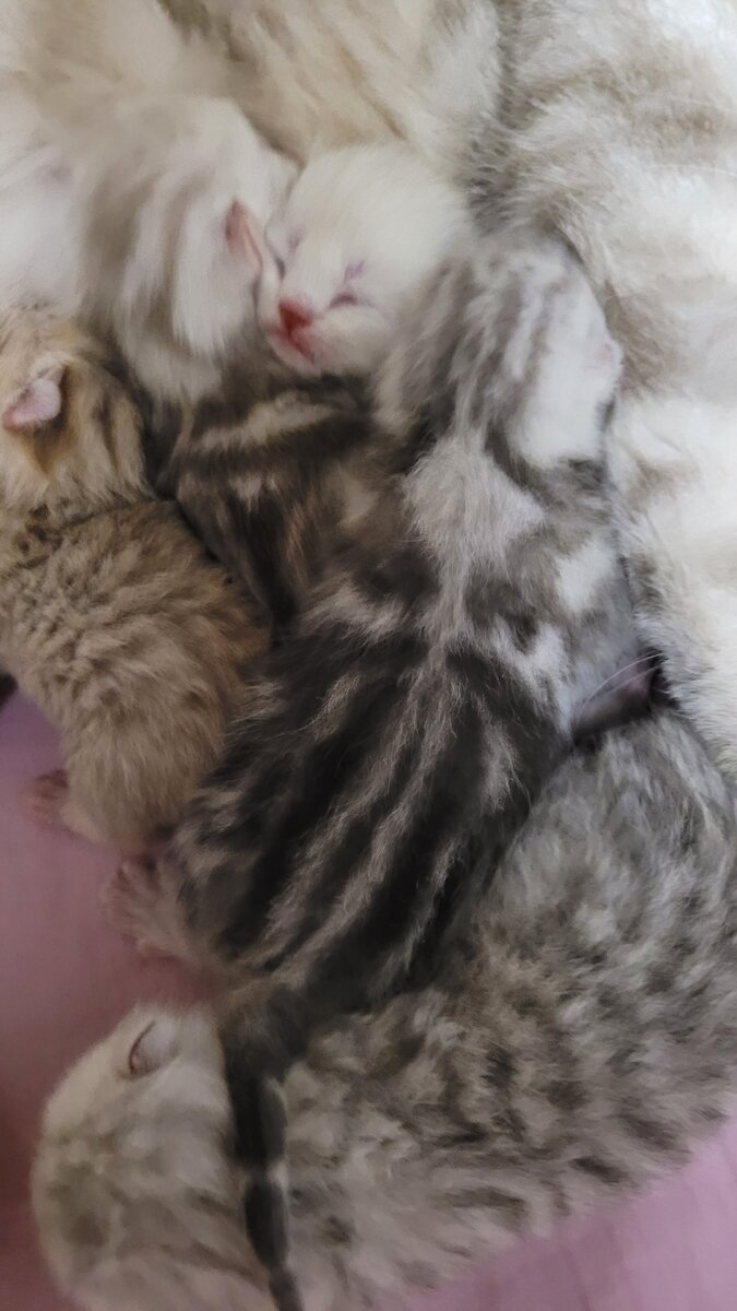 И опять их пять. Милых крошечных котят, как когда-то в детстве стихи: "А у нас сегодня кошка родила вчера котят..."