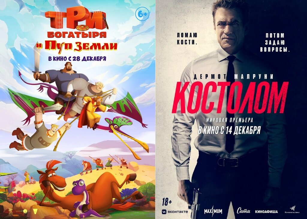 Сегодня видеоальбом сайта https://afisha7.ru пополнился трейлерами фильмов «Три богатыря и Пуп земли», «Костолом».