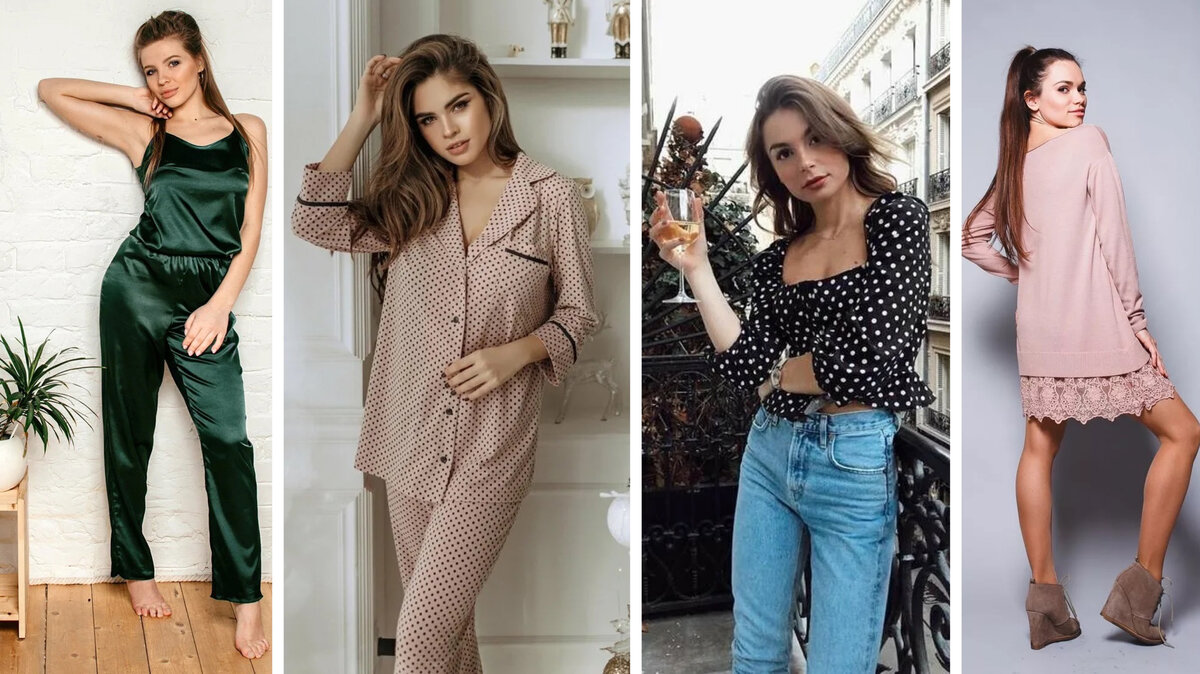 Новогодняя ночь дома — это здорово! Без блесток, шелков и пайеток — комфорт. Но подождите, что-то тут не так… В каком же наряде провести праздничную ночь? Уж точно не в халате! Мы подобрали несколько вариантов, которые не стеснят вас, но и затрапезно смотреться не будут. Пижамная вечеринка на Новый год Да не просто, а у елки! Конечно, вашу любимую хэбэшную пижамку с котиками придется оставить в комоде. А вот атласной или шелковой пижаме даем зеленый свет. Выбирайте модели красивых однотонных цветов: сиреневого, цвета шампанского, серого, зеленого, алого. Штаны должны быть длинными, а с верхом можно поэкспериментировать. Двубортные шелковые пиджаки, рубашки с поясом, а может даже комбинезон? В любом случае гарантировано, что совсем по-домашнему вы выглядеть не будете, а вот элегантность и комфорт вам обеспечены. А если хочется чего-то необычного? Тогда посмотрите на такую пижаму с горячо любимым принтом. Платье-комбинация — уже классика Поэтому смело можно надеть комбинацию в качестве