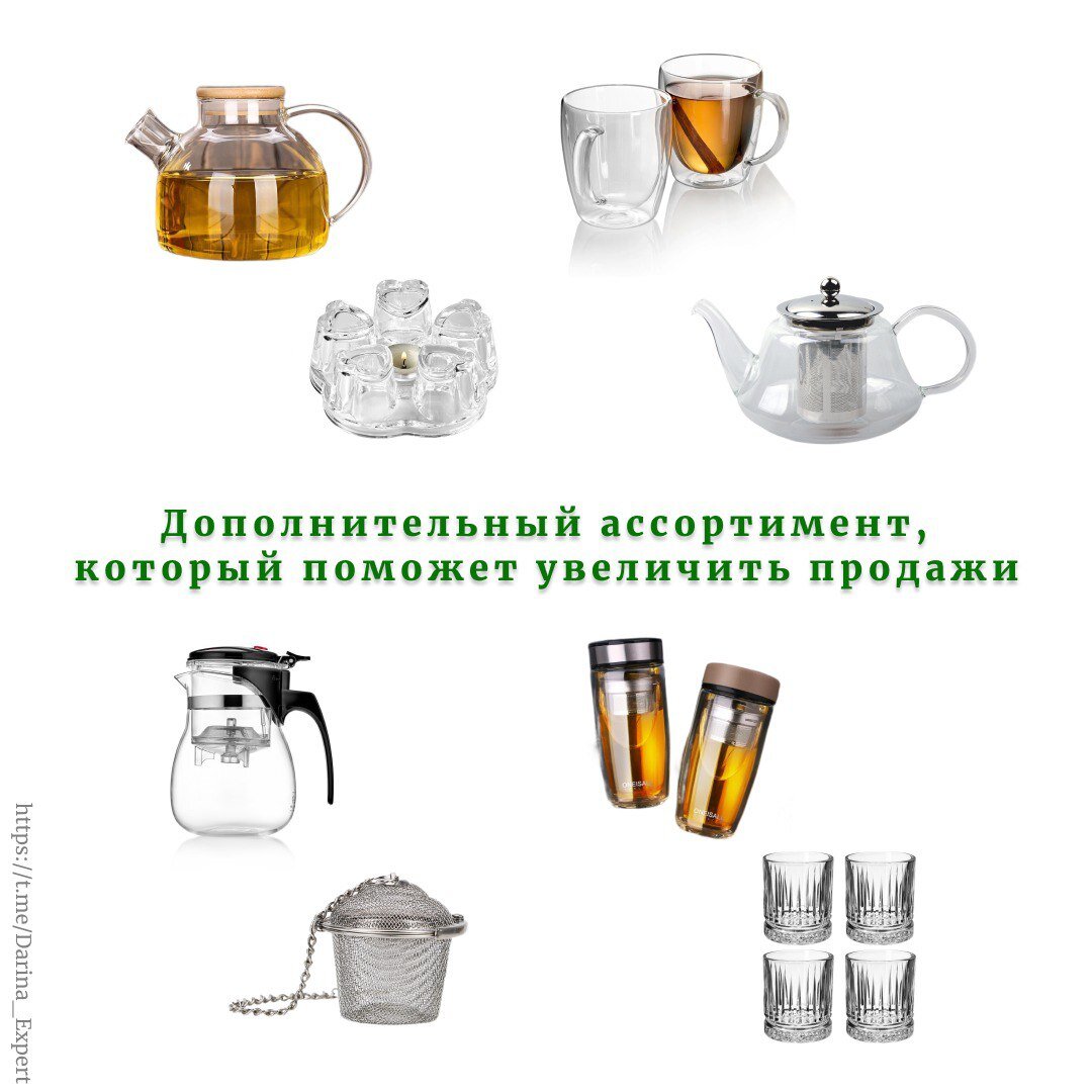 Многие новички в чайном бизнесе недополучают до 30% возможной прибыли, потому что продают только чай. Однако хорошо, когда в вашем ассортименте есть не только чай, но и разные дополнительные аксессуары. Сегодня я расскажу о некотором допассорименте, который поможет увеличить продажи вне зависимости от того, каким видом бизнеса вы занимаетесь. Первое, чем интересуются любители чая помимо самого напитка, это посуда. Чаще всего чайные компании продают стеклянную посуду, так как ее производят в Китае — она легкая, удобная, а еще дешевая. Такую посуду используют не только дома, но и в различных заведениях — барах, ресторанах и кафе. Наличие стеклянной посуды в вашем ассортименте может сильно повысить средний чек Какая посуда пользуется спросом? Чайники с крышкой / с ситом / с подставкой / прочими девайсами