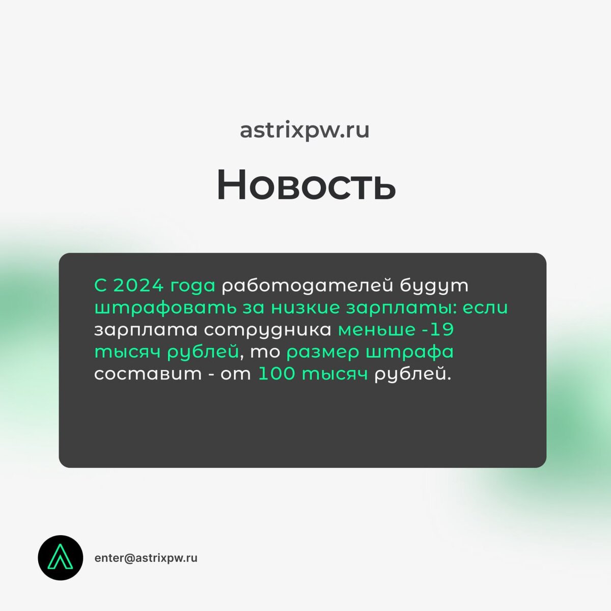 С 1 января 2024 года работодателей, которые выплачивают своим сотрудникам зарплату ниже 19 242 рублей, могут оштрафовать на сумму до 100 тысяч рублей.