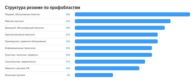 Количество активных резюме в ноябре 2023 года в Свердловской области составило 131 тысячу штук, что на 3% больше, чем в аналогичном периоде прошлого года. Наибольшее число резюме относилось к профессиональным сферам «Продажи и обслуживание клиентов» (18% резюме), «Рабочий персона» (15%), «Административный персонал» (13%) и «Производство, сервисное обслуживание» (13%). Отметим, что каждое резюме может быть опубликовано одновременно в нескольких профобластях. При этом с точки зрения динамики наибольшая активность была зафиксирована в профессиональной сфере «Стратегия, инвестиции, консалтинг» - здесь в ноябре было опубликовано на 16% больше резюме, чем год назад. Кроме того, стали активнее искать работу в сферах «Сельское хозяйство» (+15%), «Медицина, фармацевтика» (+13%), «Наука, образование» (+12%), а также «Добыча сырья» (+11%). При этом на 23% за год упало количество резюме в сфере «Розничная торговля», на 13% - в сферах «Продажи, обслуживание клиентов», «Домашний, обслуживающий персо