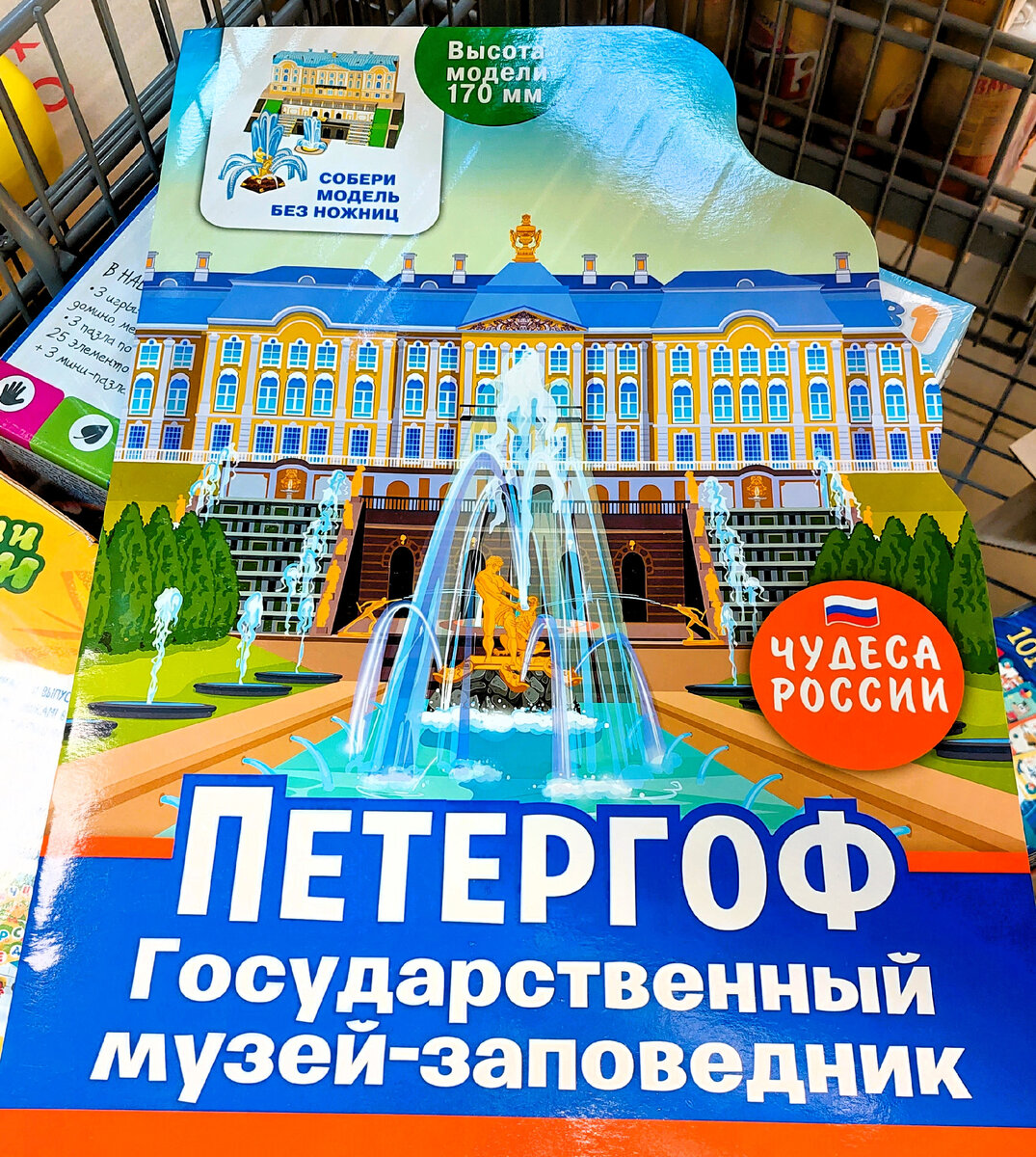 Всем огромный привет. Каждый раз есть чему удивиться в магазине Чижик. Столько всего можно найти на небольшой площади магазина, просто настоящий супермаркет. И продукты самые, что ни на есть разнообразные. От мясного и рыбного, до молочки, а также овощи и фрукты, крупы, хлебное и сладости. Причем все по адекватной цене, сеть и гораздо ниже других магазинов в сравнении. Много товаров для дома и быта. Мужская, женская и детская одежда и обувь. И в этот раз не смогла не поделиться с вами тем, что увидела сегодня в Чижике. Но основной мой обзор сегодня это занимательные книги, игры и пособия для детей. Ведь скоро Новогодние Каникулы и будет чем занять наших детей, внуков и племянников. Вы только посмотрите, сколько всего! Огромного размера книга, в ней 3D модель для сборки точной копии основного центрального здания Петергофа, Государственного музея -заповедника. Высота модели 170мм. Сборка без применения ножниц. "Чудеса России". Цена 149 руб. В книге подробная инструкция и схемы сбор