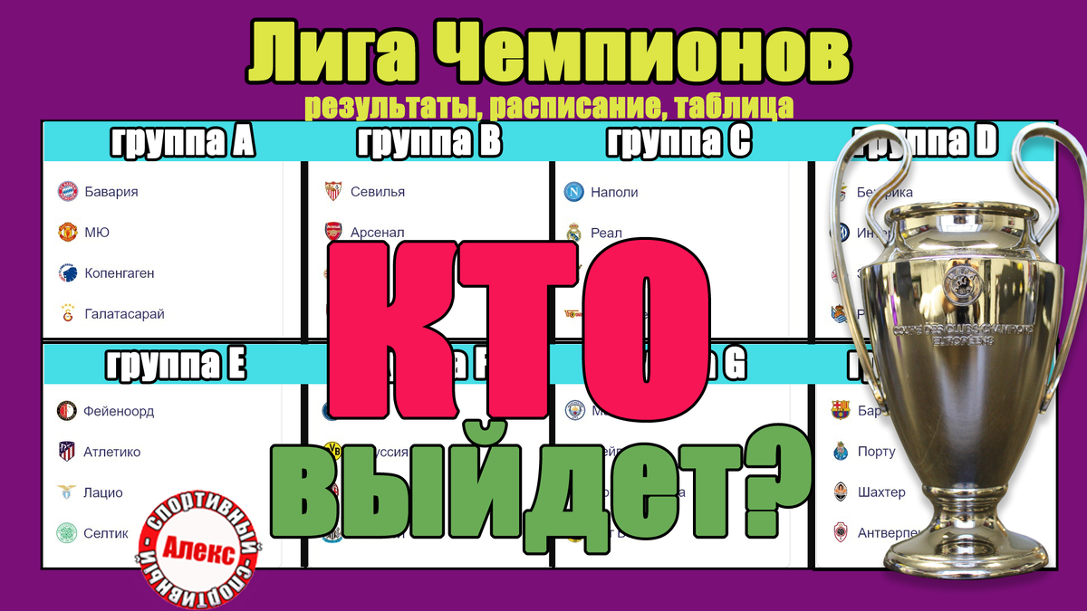 Бавария вышла в плей-офф. На вторую путёвку претендуют 3 коллектива – Копенгаген, Галатасарай, у которых по 5 очков, и Манчестер Юнайтед – 4 очка.