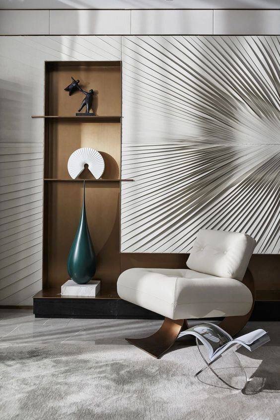 Сегодня я хочу углубиться в тему геометрии и проследить, как линии и различные узоры в дизайне влияют на наше восприятие. Вертикаль — это всегда стремление ввысь, к бесконечности и лёгкости. Горизонталь — это развитие и основательность. Диагональ — динамика. Используя и сочетания разные варианты, вы создадите своё особенное настроение внутри вашего дома. Узор всегда заполняет собой пространство, поэтому важна пропорциональность распределения: чем меньше комната, тем более аккуратными и миниатюрными должны быть любые патерны. Если вам нравится геометрия, то в интерьере советую расставлять именно акценты, чтобы не перегружать. Например, акцентная стена или декор в виде подушек или ковра. Актуальный и современный способ использовать геометрию — это 3d панели: стильный дизайнерский приём, который позволит вам и скорректировать пространство при необходимости, и создать уникальный дизайн.