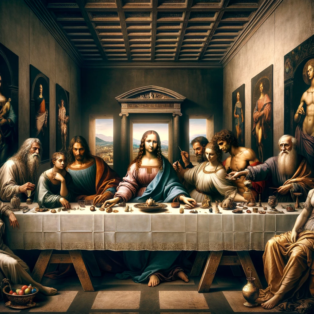 Тайная вечеря: еще одно его знаменитое произведение, "Тайная вечеря", находится в монастыре Санта-Мария-делле-Грацие в Милане и изображает Иисуса Христа с апостолами.