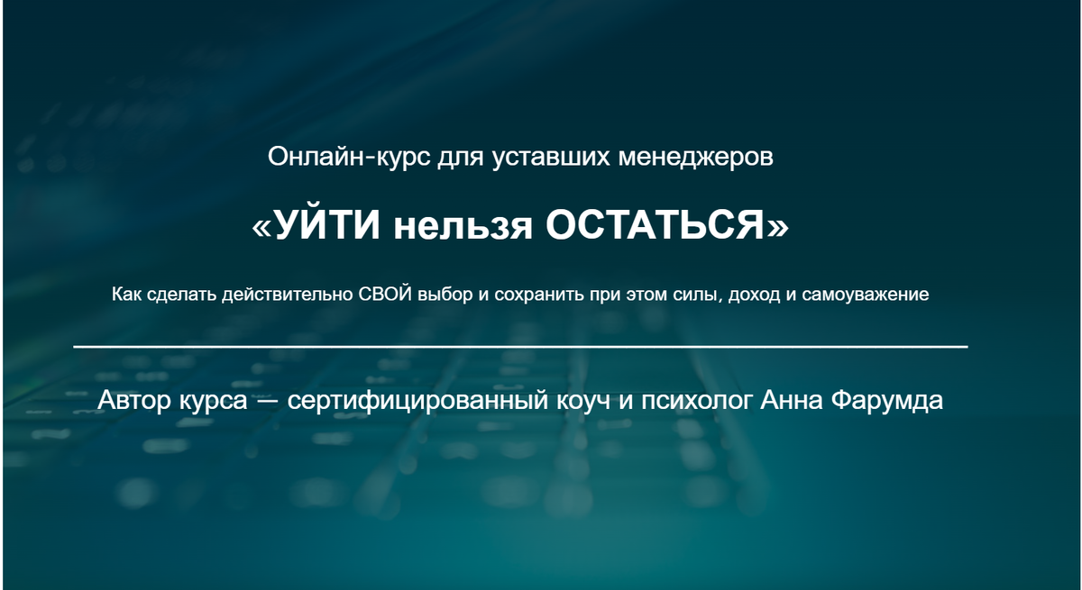 Эти знания помогли ей реализовать свою давнюю мечту - создать курс для уставших менеджеров. Она сама за 24 года прошла путь от кредитного специалиста до топ-менеджера крупного федерального банка и не понаслышке знает, насколько работа менеджера бывает нервной и напряжённой.