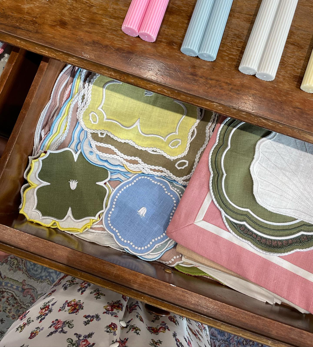 Плейсматы — это небольшие салфетки для тарелок, бокалов и приборов, которые делают сервировку более многослойной и дополняют красивую скатерть. Такие делает бренд из Екатеринбурга Nastenka Store — льняные и бархатные подложки с ажурной вышивкой выглядят как предметы из фамильной коллекции, поэтому идеально подходят к винтажной посуде. Читайте также: «Окружать себя красотой»: как реставратор из Вологодской области открыла вышивальную мастерскую «Ни на что не похожее занятие»: как мастерица из Липецка создала бренд натуралистичных свечей-цветов Мягкие, деревянные, фарфоровые: 8 локальных брендов ёлочных игрушек
