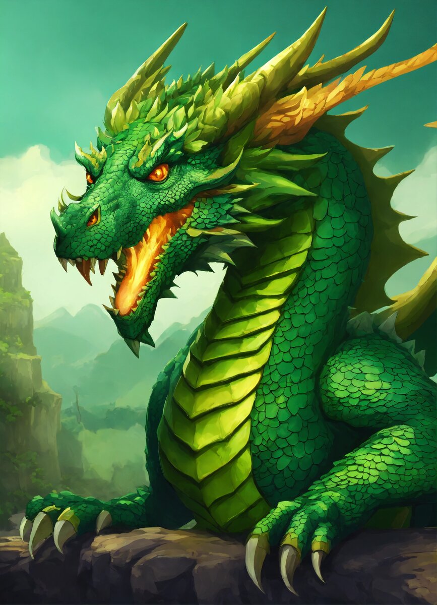 Зеленый дракон может указывать на год активного экологического развития и заботы о природе.