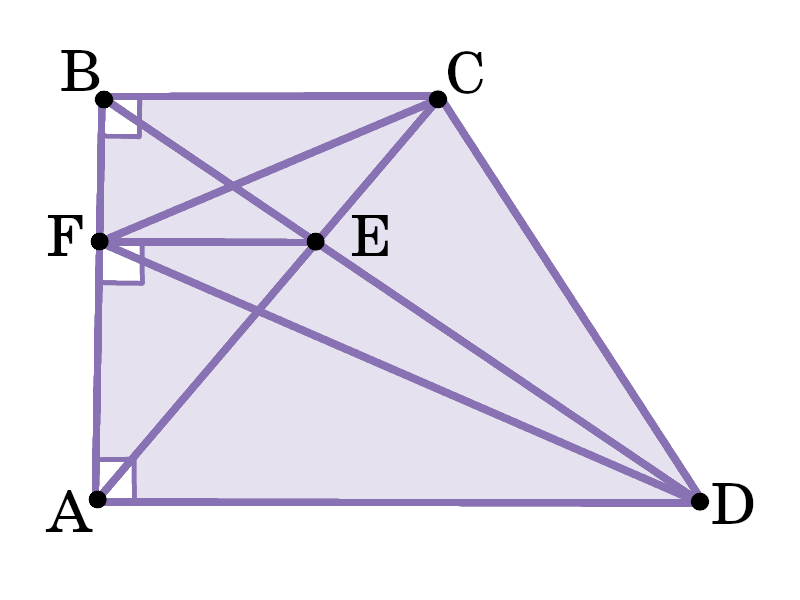 Задача: В прямоугольной трапеции ABCD с прямыми углами A и B. E — точка пересечения диагоналей, а F — основание перпендикуляра, опущенного из точки E на боковую сторону AB. Докажите, что угол CFE равен углу DFE. ©Математическая Вертикаль. Учебное пособие для общеобразовательных организаций. Автор: М.А.Волчкевич. Решение: По св-у трапеции диагонали делят друг друга на отрезки, пропорциональные её основаниям ⇒ BE/ED = BC/AD. Рассмотрим ∠ABD: EH∥AD (так как EF⟂AB и AD⟂AB) ⇒ по теореме о пропорциональных отрезках BF/AH = BE/ED ⇒ BF/AH = BC/AD. Рассмотрим прямоугольные △FAD и △FBC: BF/AF = BC/AD ⇒ △FAD ~ △FBC по II признаку подобия треугольников ⇒ ∠AFD = ∠BFC. Тогда ∠CFE = 90° - ∠BFC и ∠DFE = 90° - ∠AFD, то ∠CFE = ∠DFE. Что и требовалось доказать. Задача решена.