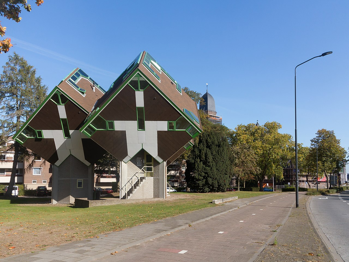 Путешествуя по Роттердаму, я встретил необычные дома. Это знаменитые кубические дома, которые спроектировал голландский архитектор-экспериментатор Пит Блом. Дома образовали квадратную улицу, она известна как "Kubuswoningen". Первые "кубики" были построены в Хелмонде.