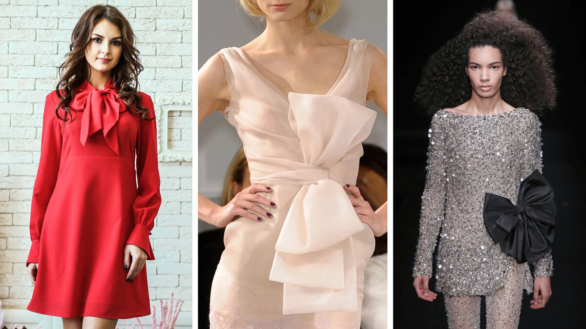 У дизайнеров свой взгляд на новогодние наряды. И вот такое платье, по их мнению, идеально вписывается в тренды уходящего 2023 и наступающего 2024 года. В этом сезоне на пике популярности платья с бантами. Сегодня мы расскажем вам, на каких моделях платьев и видах декора стоит акцентировать внимание. Декор в виде бантов стал главным масхэвом осенне-зимнего сезона 2023-2024 года. Особенно эффектно смотрятся платья с бантами. Их уже носят мировые знаменитости, законодатели моды и городские модницы. Как выглядят самые модные банты этого сезона? Для того чтобы составить стильный образ с бантами, нужно понимать какой именно вид декора в тренде. Зимой 2023-2024 года особо выигрышно будут смотреться банты, заменяющие части платья. Обратите внимание на наряды, в которых декоративные элементы выполняют роль фигурного декольте, пояса или рукавов. Размер банта в наряде не столь важен. Это может быть как мелкий элемент декора, так и весьма объемный бант. В некоторых случаях допустимо использование